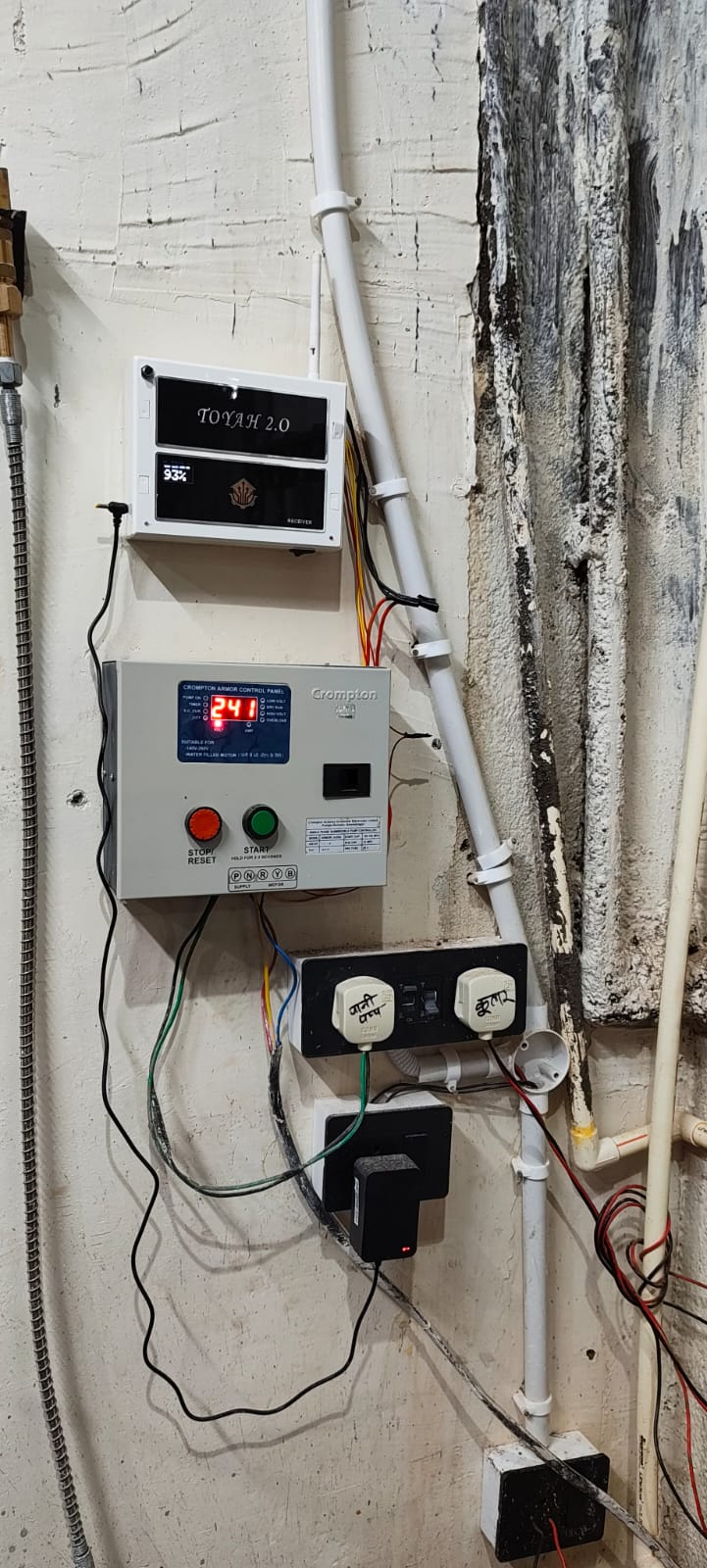 The TOYAH 2.O Wireless Fully Automatic Water Level Controller is a complete solution designed to automate and protect your domestic and commercial water pumps. Unlike conventional controllers, this system is engineered to work with motors with starters panel (Green Button and MCB). This advanced system features three modes of operation – Fully Automatic, Semi-Automatic, and Manual Mode – allowing users to choose the most convenient way to manage water flow. The OLED display provides a 24×7 real-time percentage reading of water level, so you always know the exact status of your overhead or underground tank. With this feature, water wastage is minimized, and you gain complete visibility over your water usage. The built-in Dry Run Protection safeguards the pump by cutting off power when water supply is stop, preventing costly motor burn-outs. In addition, the Auto Cut-Off function ensures that once the tank is full, the pump automatically switches off, saving energy and avoiding overflow. Using a wireless transmitter and receiver system, the controller offers reliable operation with a range of up to 5 kilometers. It does not require SIM cards, Wi-Fi, or any paid subscriptions, making it cost-effective and maintenance-free. Its contactless ultrasonic sensor, protected with resin and rated IP64 waterproof, guarantees long service life even in tough environments. The system is designed with user safety and convenience in mind. Its shock-proof housing, dedicated filter technology, and buzzer alerts for full or empty tanks ensure safe and efficient performance. For extra flexibility, a manual ON/OFF option is always available, allowing you to override the automatic system whenever required. In case of any technical fault, the device includes an easy bypass feature, so your water supply is never interrupted. Installation is straightforward, and the package includes everything needed to get started: 1× Receiver Unit 1× Transmitter Unit 2× 5V DC Adapters 2× Antennas 1× Ultrasonic Sensor 1x Male-Female 2 Pin Plug 2 Meter Extensible Wire for Pump The TOYAH 2.0 Wireless Water Level Controller is built for Indian households and industries that need a reliable, internet-free, and easy-to-use solution for managing water. With its universal compatibility – covering motors without starters.. Backed by a 1-Year replacement warranty for internal fault only and a brand known for durable smart home solutions, this controller gives you peace of mind while ensuring your motor and water supply are always protected.